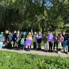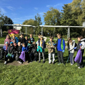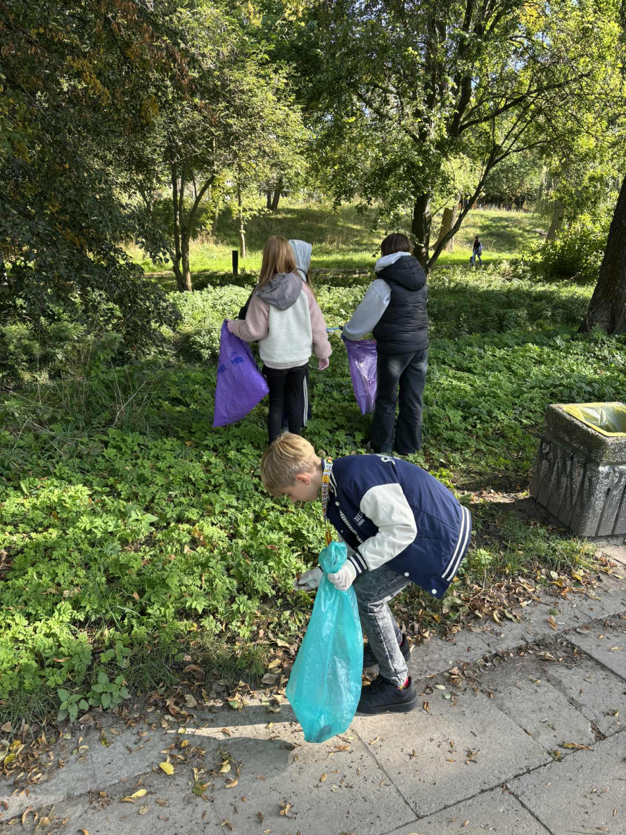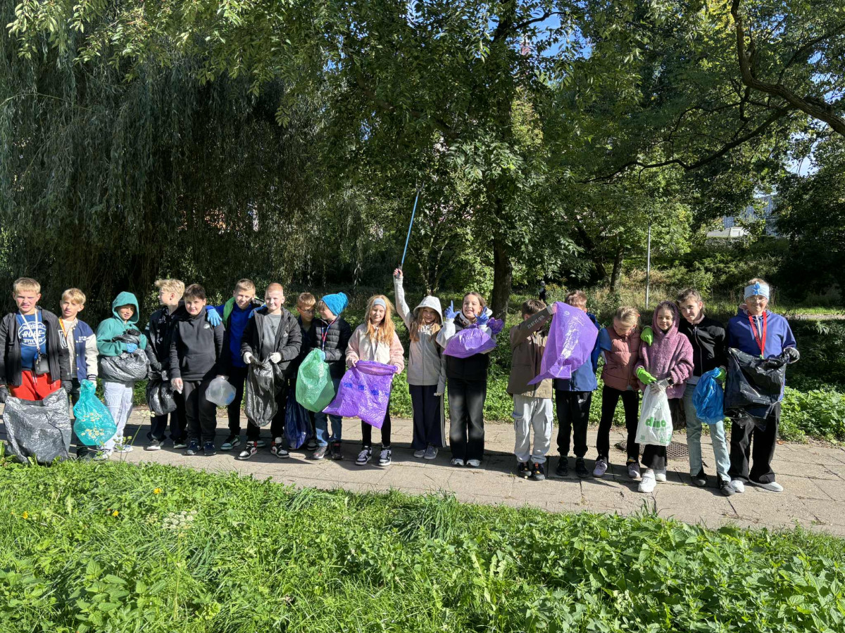 W dniu 25.09.2025r. uczniowie klasy 4d aktywnie włączyli się w ogólnopolską akcję „Sprzątanie Świata”. Zaopatrzeni w rękawiczki i worki na śmieci porządkowali teren wzdłuż rzeki Sielnicy.
