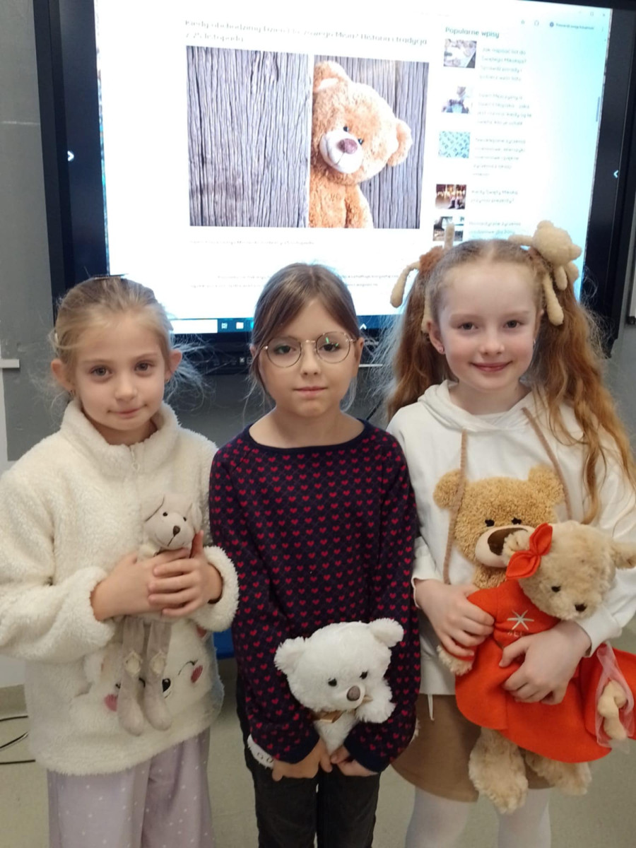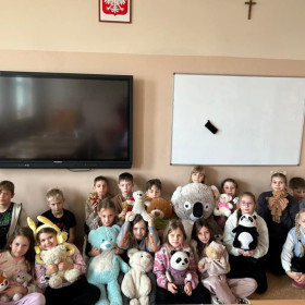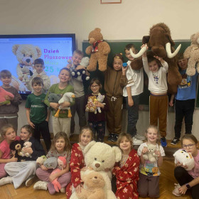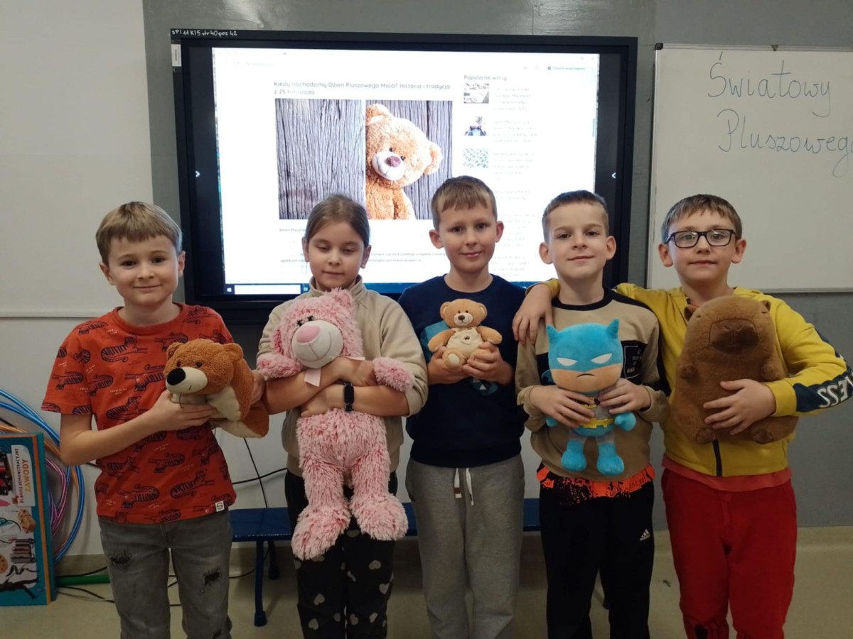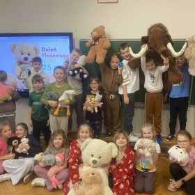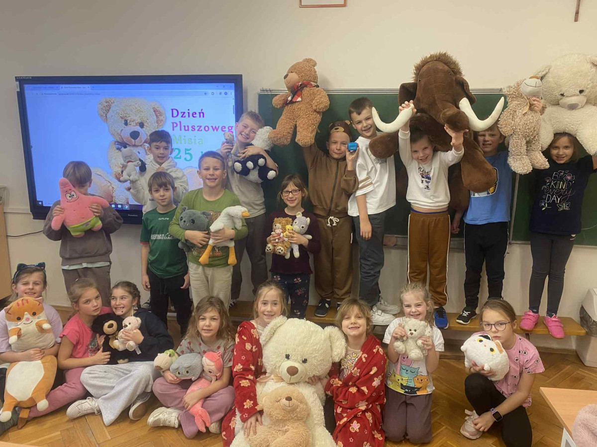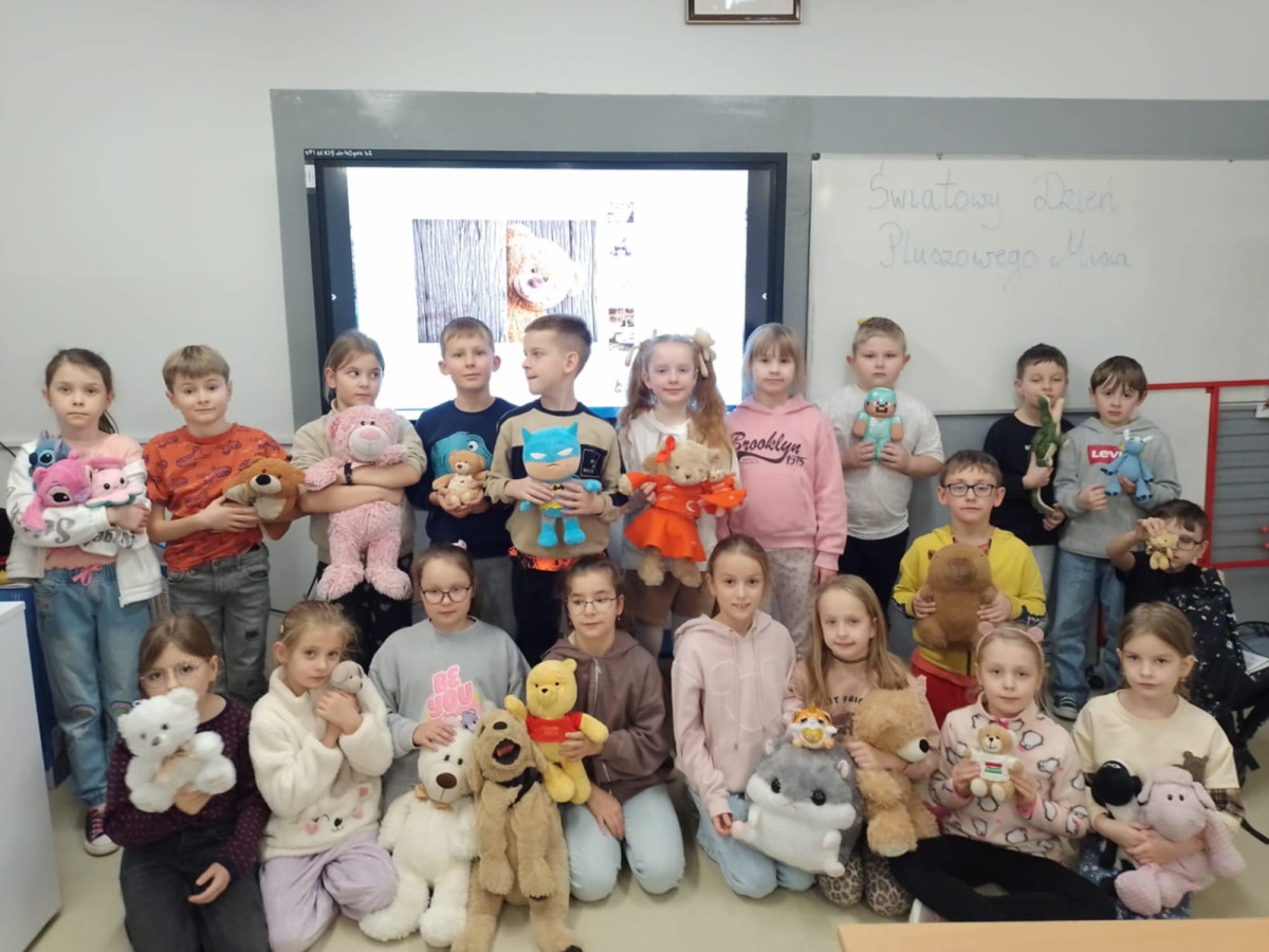 25 listopada 2025 r. obchodziliśmy w naszej szkole Dzień Pluszowego Misia – święto, które od lat dostarcza dzieciom wiele radości i wprowadza do szkolnych sal wyjątkową, ciepłą atmosferę. Tego dnia uczniowie przynieśli swoje ulubione pluszaki, które towarzyszyły im podczas zajęć i zabaw. W klasach odbyły się tematyczne aktywności: czytanie opowiadań o misiach, zabawy ruchowe, konkursy oraz prace plastyczne inspirowane bohaterami najpopularniejszych bajek. Dzieci chętnie dzieliły się historiami związanymi ze swoimi pluszakami, a szkoła wypełniła się uśmiechem i kolorowymi misiami. Dzień Pluszowego Misia był doskonałą okazją do integracji, rozwijania wyobraźni i przypomnienia sobie, jak ważną rolę w dzieciństwie odgrywają ulubione zabawki.