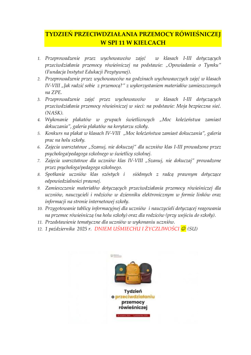 Zajęcia w zakresie pomocy pp na rok szkolny 2024/2025r.