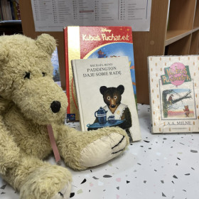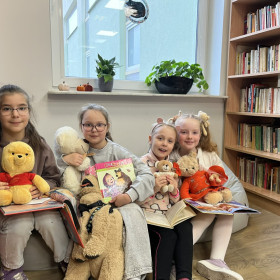 25 listopada wspólnie z uczniami wyruszyliśmy w książkową podróż, poznając przygody Kubusia Puchatka i Misia Paddingtona. Dzieci mogły wybierać spośród wielu wspaniałych książek o misiach dostępnych w naszej bibliotece. Na tablicy biblioteki przygotowaliśmy gazetkę, w której zaprezentowaliśmy zarówno naszych pluszowych bohaterów, jak i ciekawą historię powstania pierwszej pluszowej maskotki. Na koniec każdy czytelnik mógł sięgnąć do „misiowego słoja” i wylosować dla siebie kubusiową mądrość – idealną na poprawę humoru i chwilę refleksji.