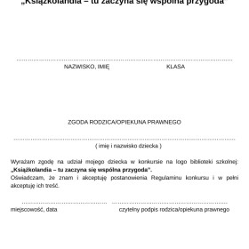 Prace złożone do konkursu przechodzą na własność Organizatora z przeznaczeniem na cele promocji biblioteki, a zgłoszenie prac do konkursu jest równoznaczne z przeniesieniem majątkowym praw autorskich na rzecz Organizatora bez prawa do wynagrodzenia twórcy oraz z wyrażeniem zgody na ich publikację bez ograniczeń czasowych i terytorialnych.