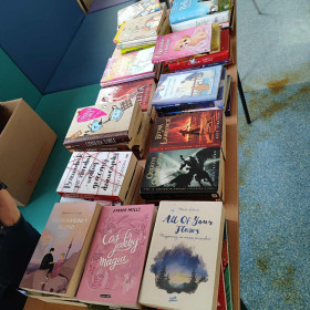 Książki do zaprezentowania wybrały uczennice klasy 7- wspierające pracę Książkolandii w ramach wolontariatu.