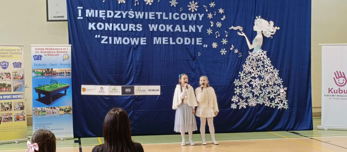 Uczennice naszej szkoły godnie reprezentowały nas podczas Pierwszego Międzyświetlicowego Konkursu Wokalnego „Zimowe melodie”, organizowanego przez Szkoła Podstawowa nr 1 w Kielcach. W kategorii śpiew solo zaprezentowała się Milena Rybka. Występ wzbogacił akompaniament taneczny Klary Śluzek i Zosi Zawieruchy z klasy 2c. Opiekunem artystycznym zespołu była Pani Danuta Kolasa. W kategorii duet wystąpiły uczennice klasy 3c – Pola Obara oraz Mia Tylkowska, przygotowane pod opieką Pana Rafała Gęborka. Serdecznie gratulujemy wszystkim uczestniczkom odwagi, zaangażowania i pięknych występów. Jesteśmy dumni, że z takim talentem i pasją reprezentują naszą szkołę!