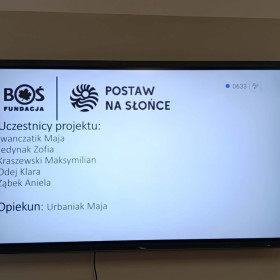Grupa uczniów z klas ósmych w składzie: Maja Iwanczatik z klasy 8a, Klara Odej z klasy 8a, Zofia Jedynak z klasy 8e, Maksymilian Kraszewski 8e, Aniela Ząbek z klasy 8e, pod opieką pani Mai Urbaniak, wzięła udział w XII edycji konkursu "POSTAW NA SŁOŃCE", organizowanego przez Fundację Banku Ochrony Środowiska.