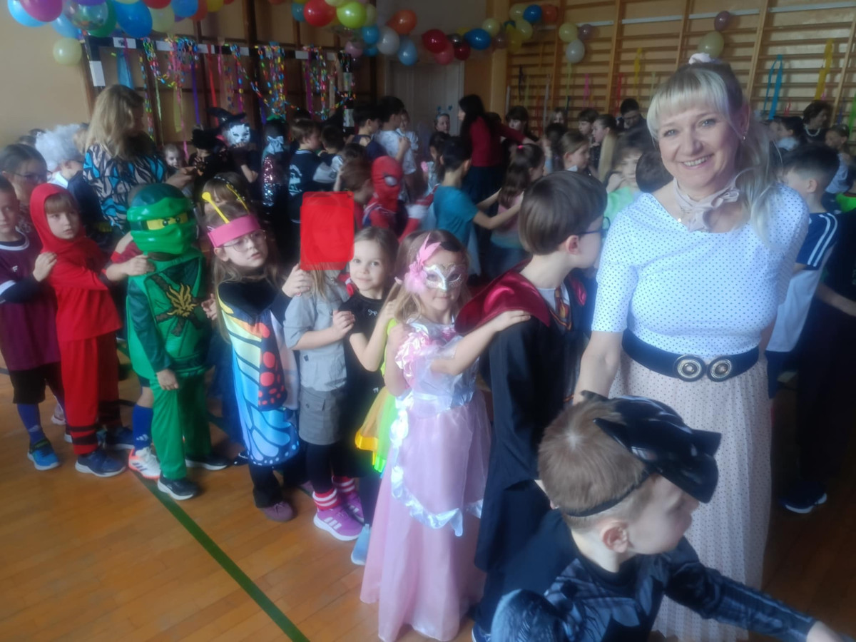 6 lutego 2026r. w radosnej, kolorowej atmosferze odbyła się szkolna zabawa karnawałowa dla uczniów klas 1–3. Tego dnia sala zamieniła się w prawdziwą krainę bajek – nie zabrakło księżniczek, superbohaterów, zwierzątek i innych fantastycznych postaci. Dzieci z entuzjazmem brały udział w tańcach, konkursach i wspólnych zabawach przy muzyce. Było mnóstwo śmiechu, uśmiechów i dobrej energii. Zabawa karnawałowa była doskonałą okazją do integracji, rozwijania kreatywności oraz wspólnego świętowania w gronie rówieśników. To wydarzenie na długo pozostanie w pamięci naszych najmłodszych uczniów.