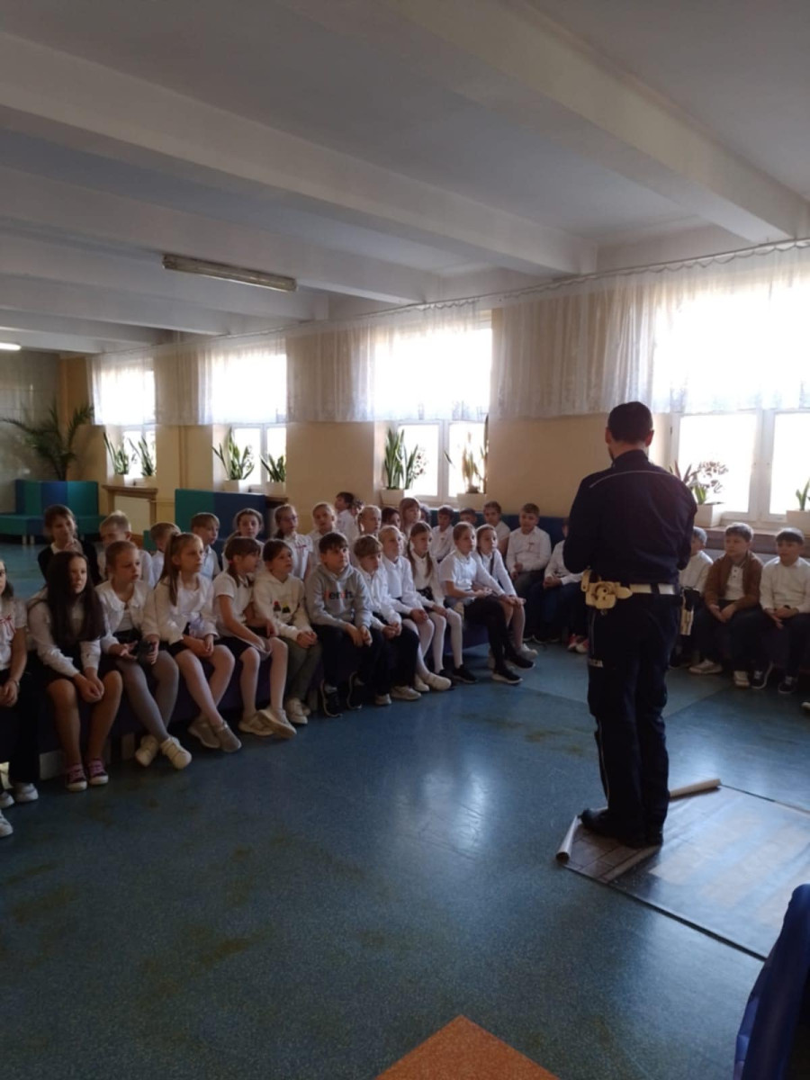 W dniu 07 listopada 2025 roku w naszej szkole uczniowie klas I -III uczestniczyli w spotkaniu profilaktyczno - edukacyjnym prowadzonym przez policjanta z Wydziału Ruchu Drogowego Komendy Miejskiej Policji w Kielcach – aspiranta Tomasza Klimczewskiego.