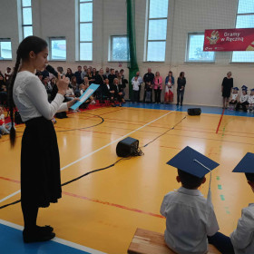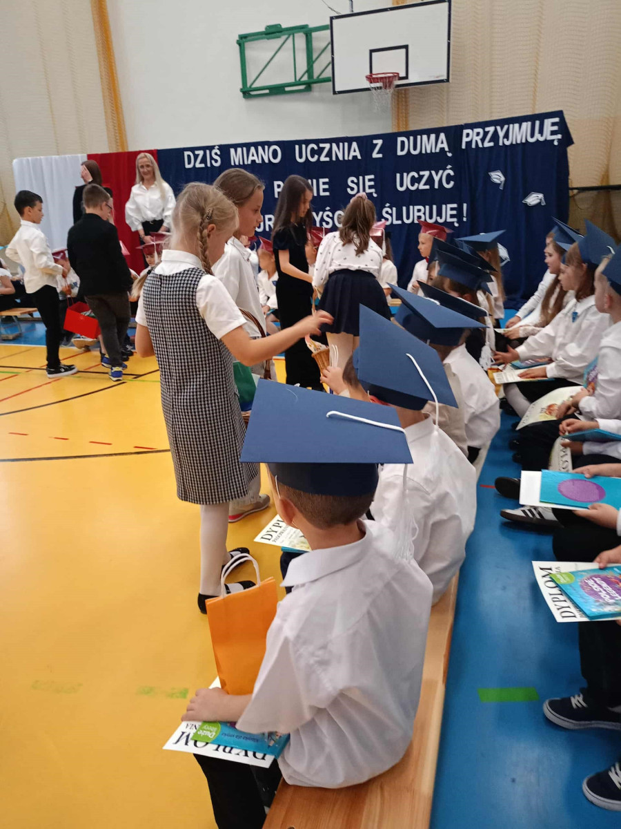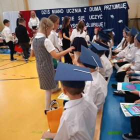 Uroczystość uświetniły występy artystyczne przygotowane przez uczniów klas pierwszych, pełne radości, śpiewu i wzruszeń. Na zakończenie dzieci otrzymały pamiątkowe dyplomy, książki oraz drobne upominki. Po zakończeniu części oficjalnej wszyscy uczestnicy udali się do klas na słodki poczęstunek przygotowany przez rodziców.