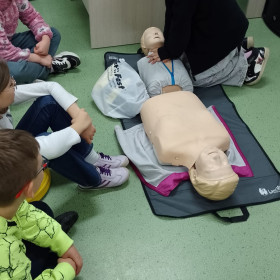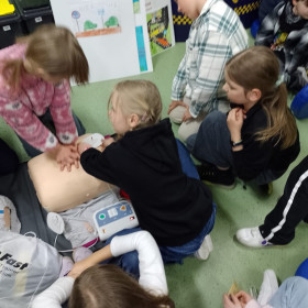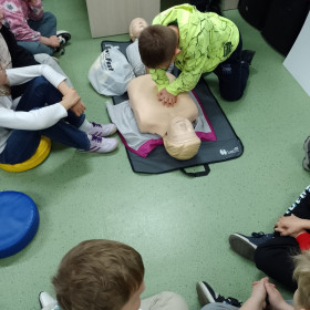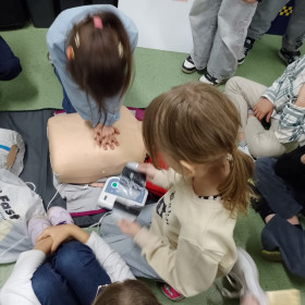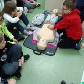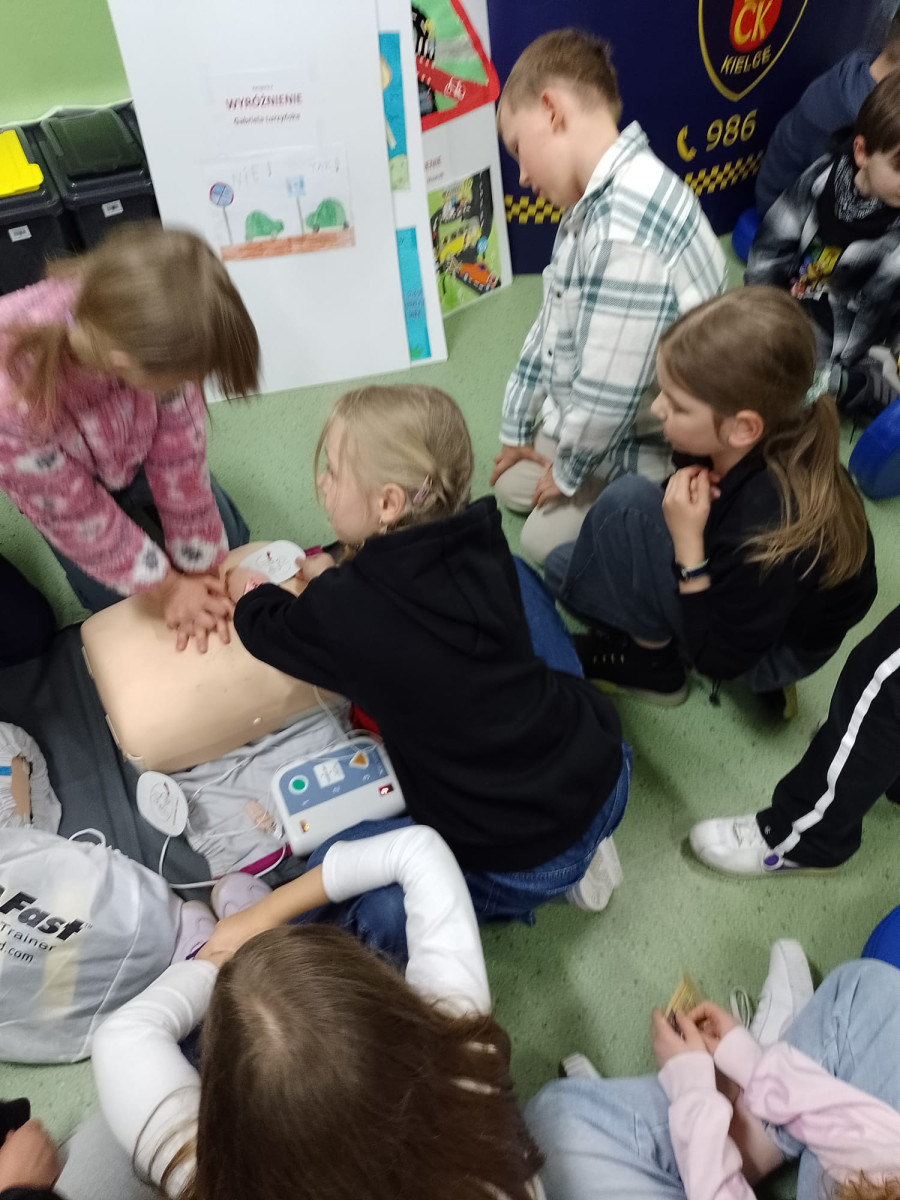 W dniu 13 IV 2026 r. uczniowie klasy II d uczestniczyli w zajęciach w sali profilaktyczno-edukacyjnej Straży Miejskiej w Kielcach – SMIKLANDZIE. Podczas spotkania dzieci w ciekawy i praktyczny sposób poznawały podstawowe zasady udzielania pierwszej pomocy przedmedycznej, biorąc udział w ćwiczeniach i symulacjach sytuacji zagrożenia. Zajęcia były doskonałą okazją do kształtowania odpowiedzialnych postaw, rozwijania umiejętności właściwego reagowania w sytuacjach niebezpiecznych oraz utrwalenia numerów alarmowych. Nauka poprzez działanie sprawiła uczniom wiele radości i była cennym doświadczeniem.