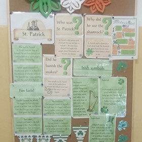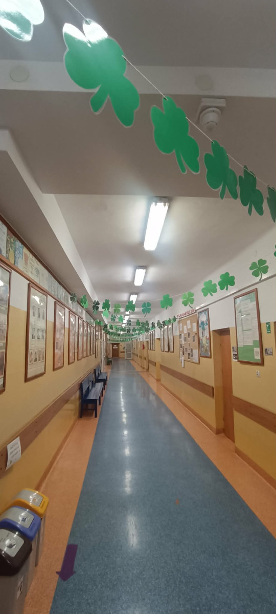 17 marca 2026 roku w naszej szkole obchodziliśmy Dzień Świętego Patryka - patrona Irlandii. Tego dnia każdy, kto chciał, mógł założyć coś w kolorze zielonym, a korytarze zostały udekorowane koniczynkami.