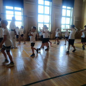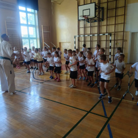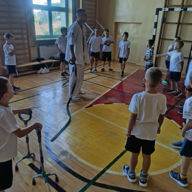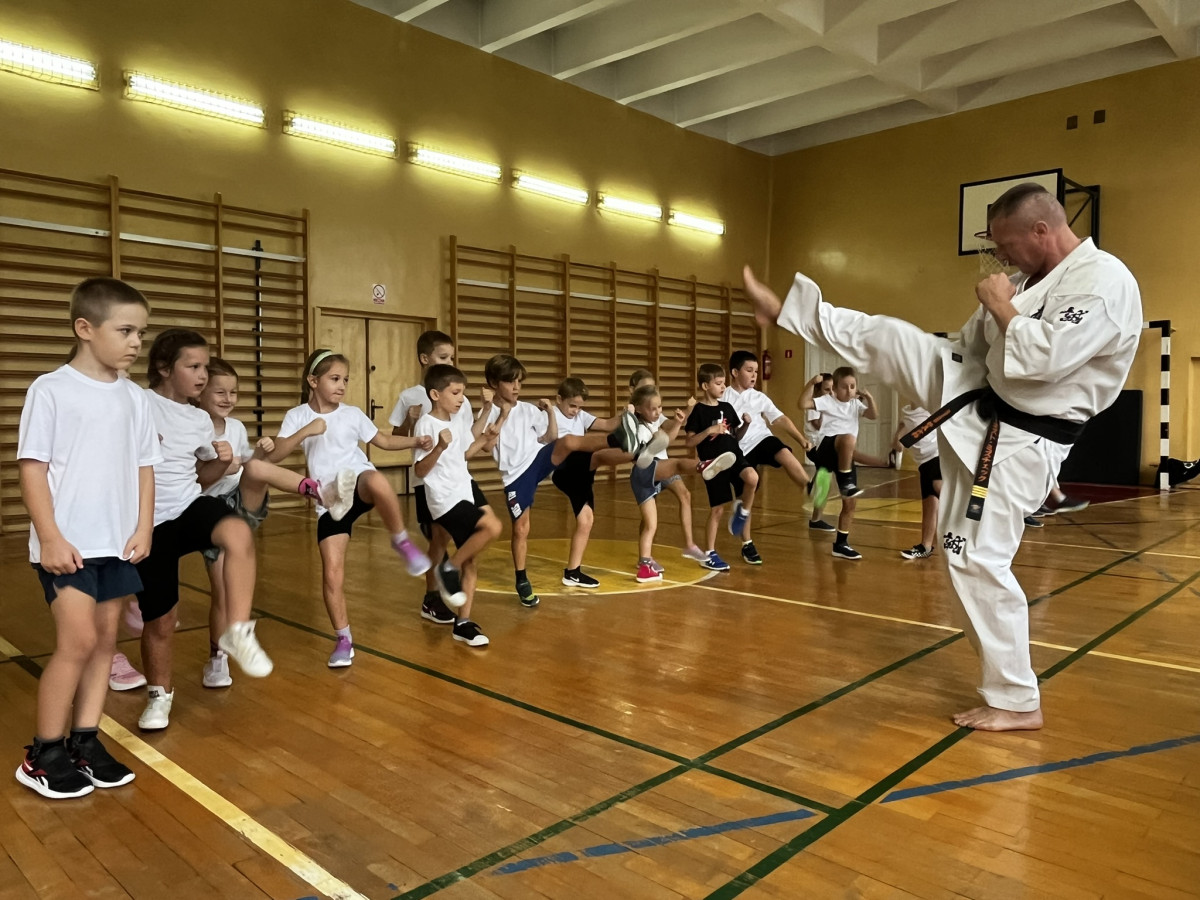 Dnia 18 września 2025 r. klasy 1c, 1d, 2b oraz 19 września klasy 1a i 1b - pod okiem doświadczonych instruktorów - uczestniczyły w zajęciach karate, w ramach zadania publicznego pn. ŚCIEŻKA REHABILITACYJNA Z KLUBEM KARATE KYOKUSHIN CHIKARA