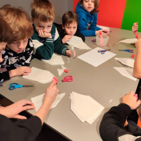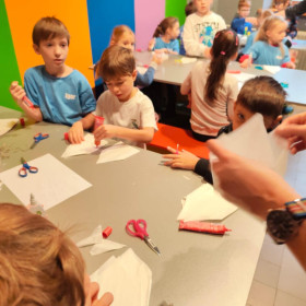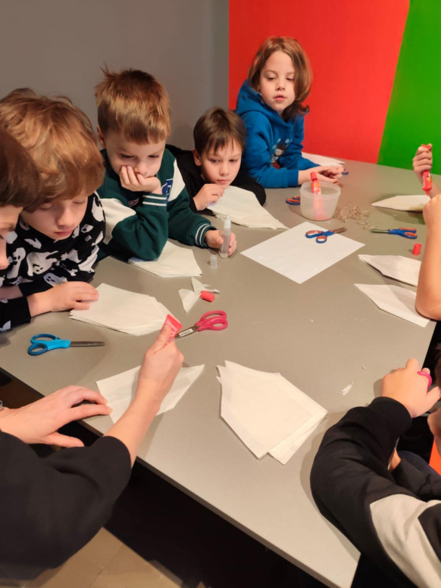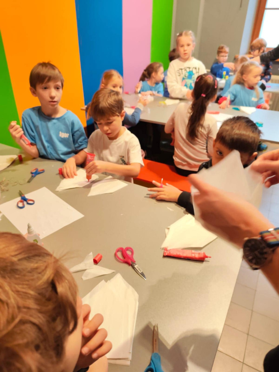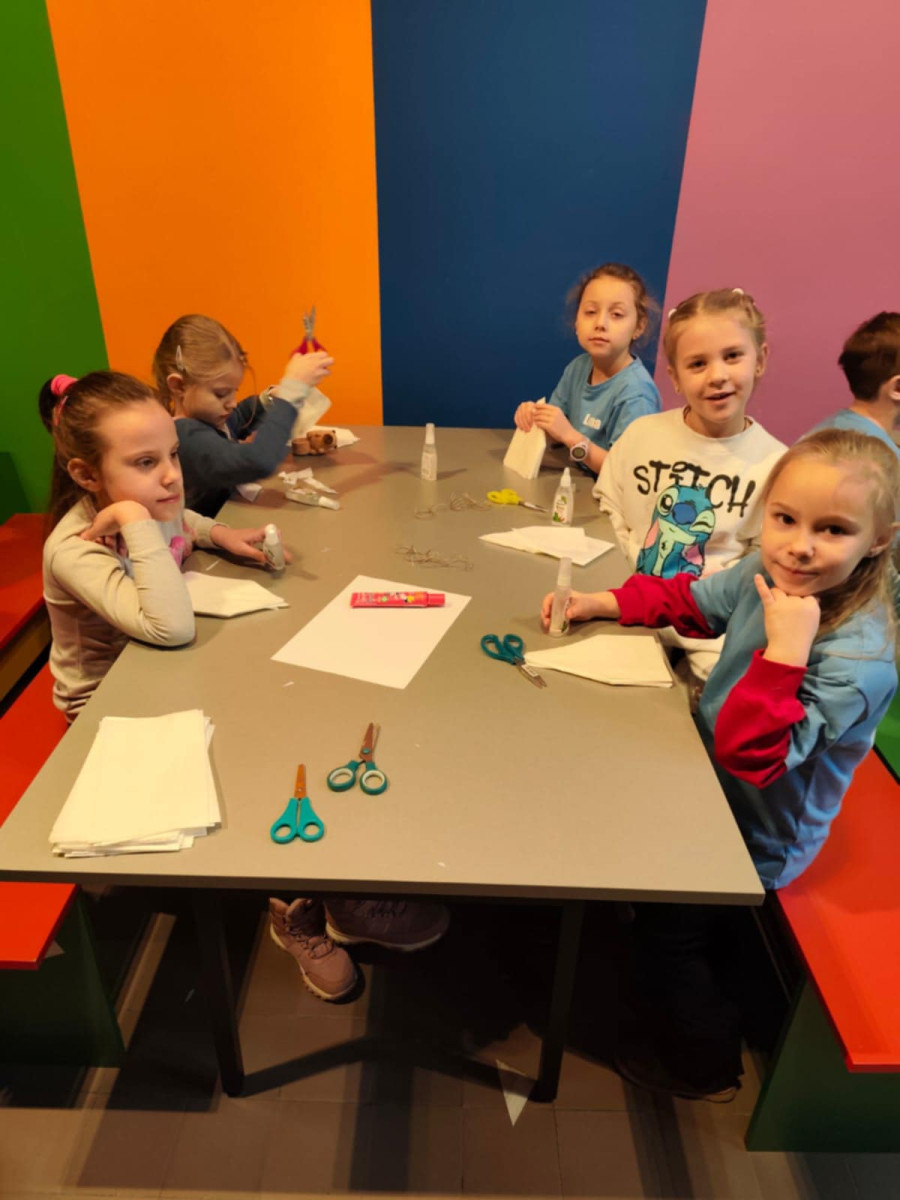 Uczniowie klasy 1b uczestniczyli w warsztatach plastycznych zorganizowanych w Muzeum Dialogu Kultur. Poznali symbolikę Gwiazdy Betlejemskiej w polskiej tradycji ludowej i kolędniczej, oglądali eksponaty muzealne, a następnie samodzielnie wykonali gwiazdy z papieru i słomek.