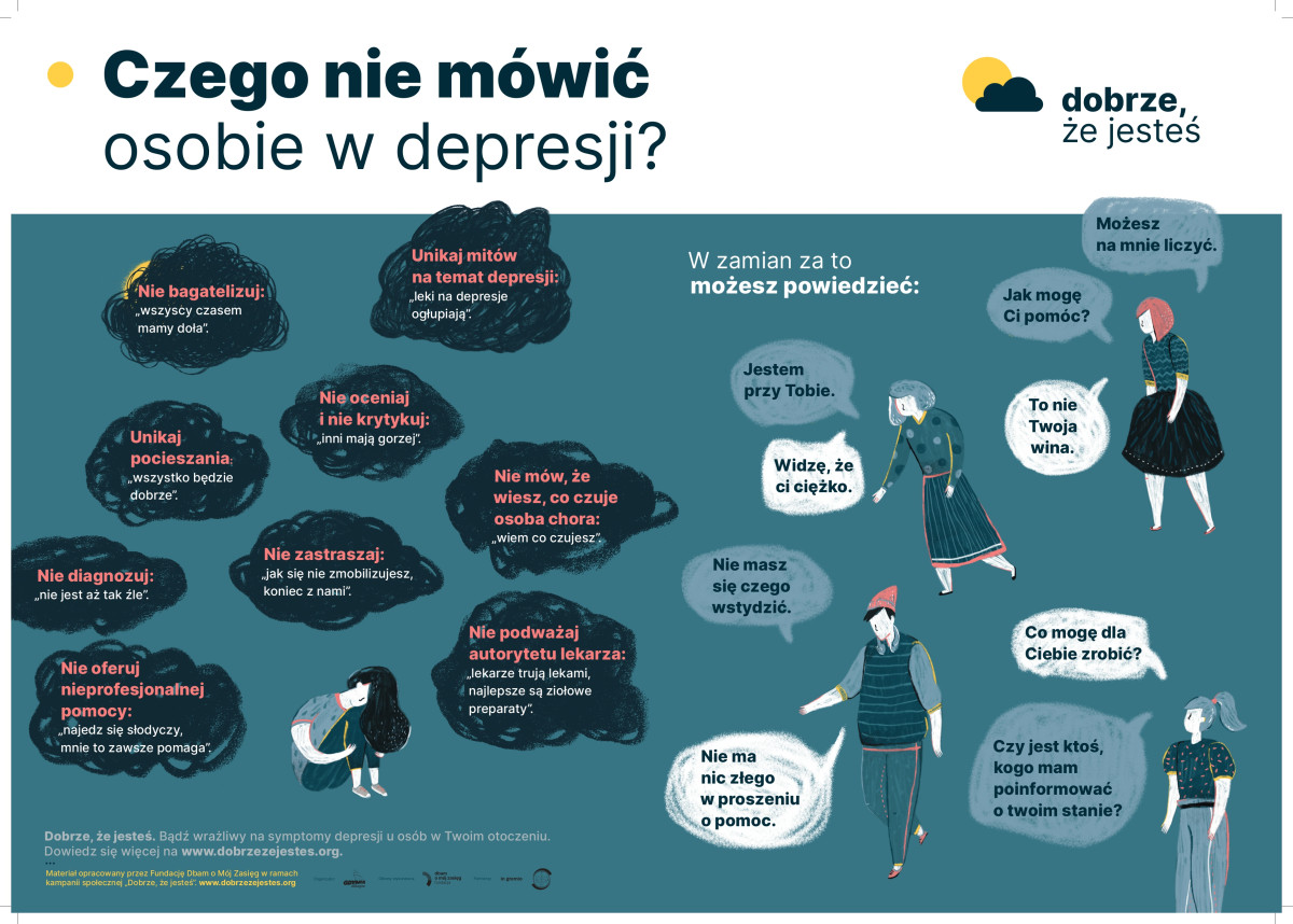 Pod hasłem "DEPRESJA - ROZUMIEM - WSPIERAM" zorganizowane zostały działania z zakresu profilaktyki depresji, zdrowia psychicznego i wsparcia dla tych którzy zmagają się z depresją.