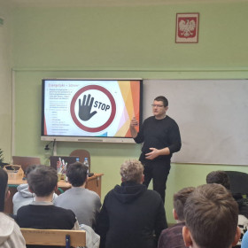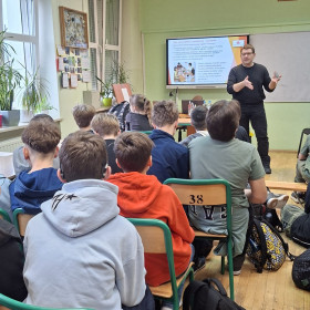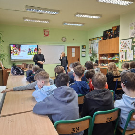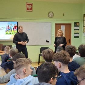 23 lutego 2026 roku w ramach programu profilaktycznego "Trzymaj Formę" uczniowie klas siódmych wzięli udział w spotkaniu z przedstawicielami Powiatowej Stacji Sanitarno-Epidemiologicznej.