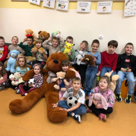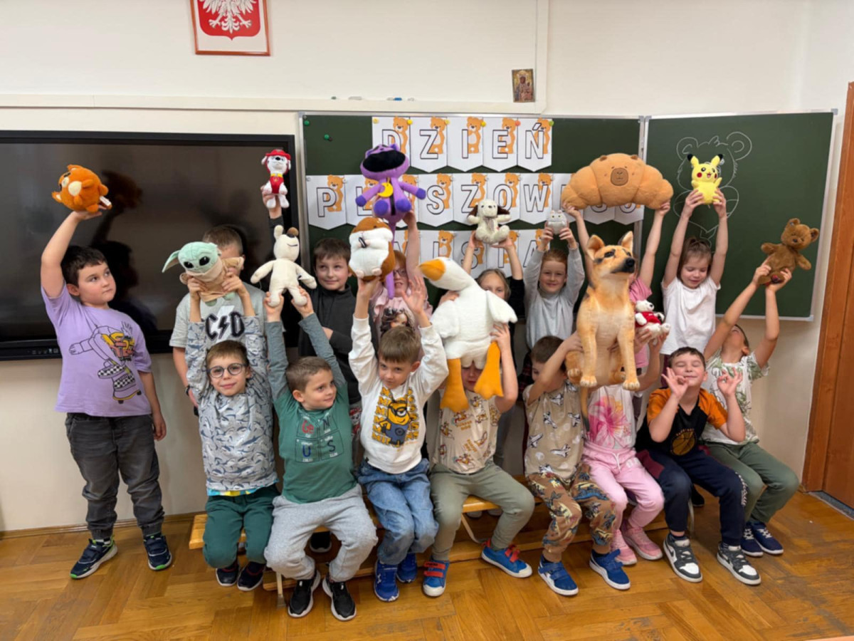 25 listopada 2025 r. obchodziliśmy w naszej szkole Dzień Pluszowego Misia – święto, które od lat dostarcza dzieciom wiele radości i wprowadza do szkolnych sal wyjątkową, ciepłą atmosferę. Tego dnia uczniowie przynieśli swoje ulubione pluszaki, które towarzyszyły im podczas zajęć i zabaw. W klasach odbyły się tematyczne aktywności: czytanie opowiadań o misiach, zabawy ruchowe, konkursy oraz prace plastyczne inspirowane bohaterami najpopularniejszych bajek. Dzieci chętnie dzieliły się historiami związanymi ze swoimi pluszakami, a szkoła wypełniła się uśmiechem i kolorowymi misiami. Dzień Pluszowego Misia był doskonałą okazją do integracji, rozwijania wyobraźni i przypomnienia sobie, jak ważną rolę w dzieciństwie odgrywają ulubione zabawki.